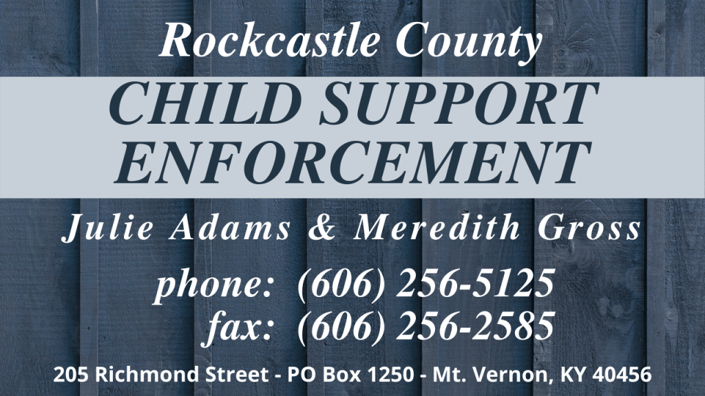 The Rockcastle County Attorney’s Office Division of Child Support Enforcement is here to serve our community by helping to ensure that child support orders are enforced efficiently and professionally. We believe that effective child support enforcement has a direct impact on future generations. The office has a number of functions including, but not limited to, establishing child support and medical support orders, establishing paternity for children born out of wedlock, seeking enforcement of child support and medical support orders, and locating absent parents.